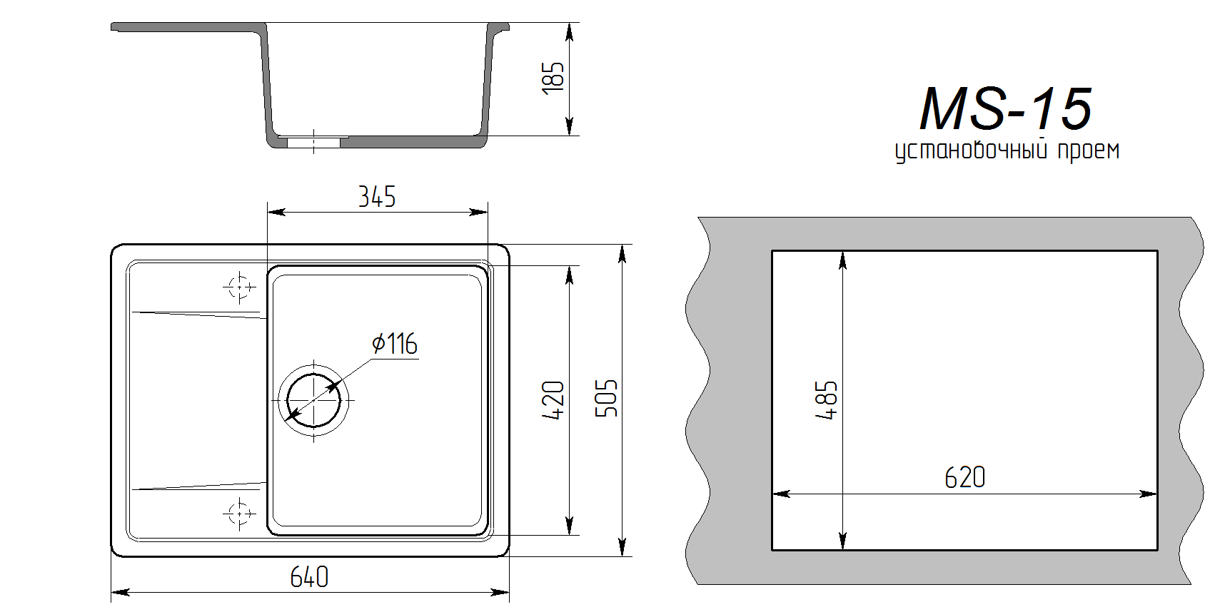 Мойка каменная МС-15 Звездное небо 640х505х185 (без фрезы)