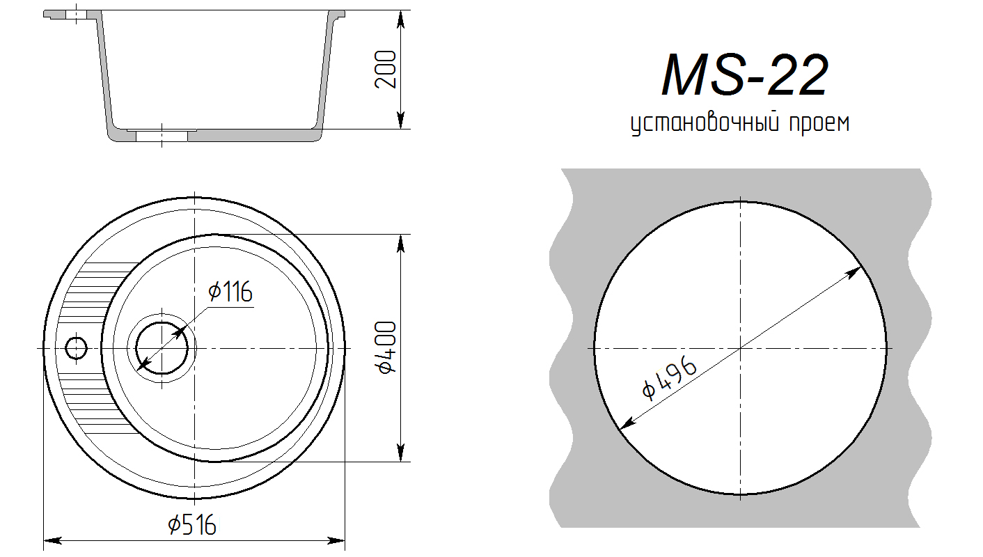 Мойка каменная МС-22 терракот металлик глянец d516/400 h200